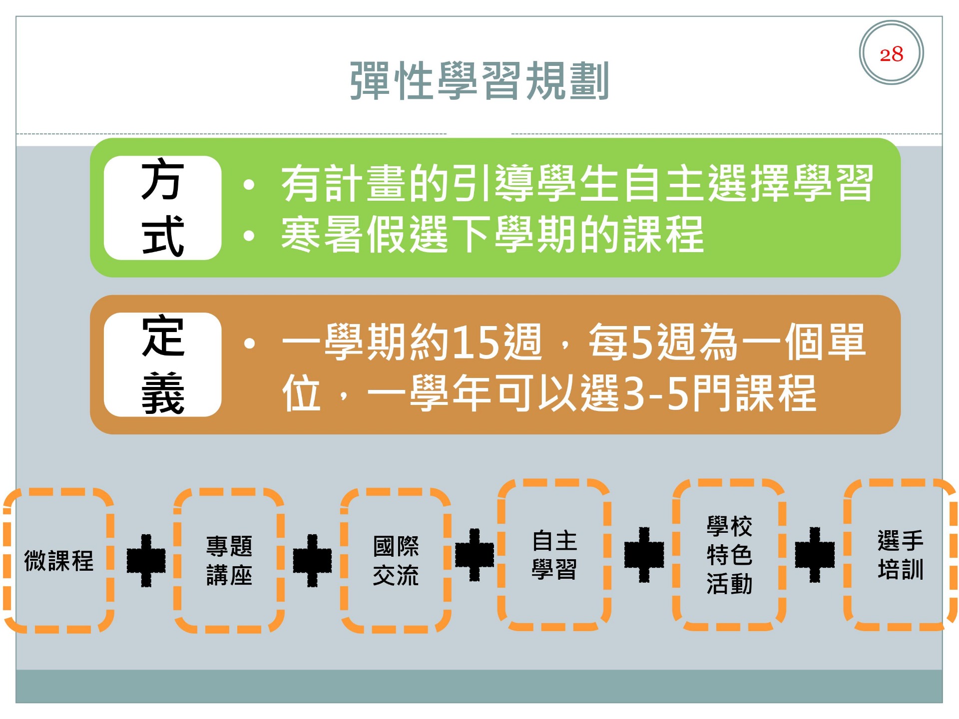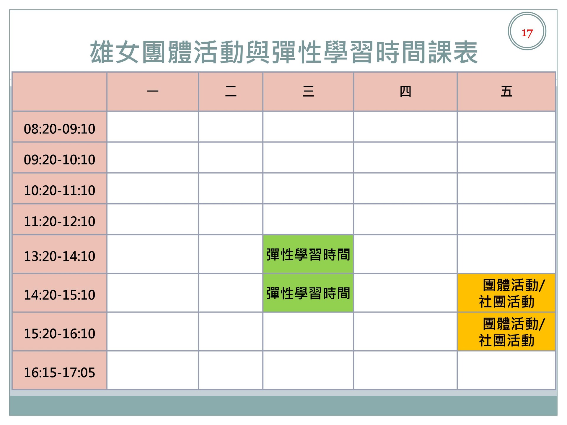 雄女在彈性課程時間提供一些課程或活動讓學生自行安排~